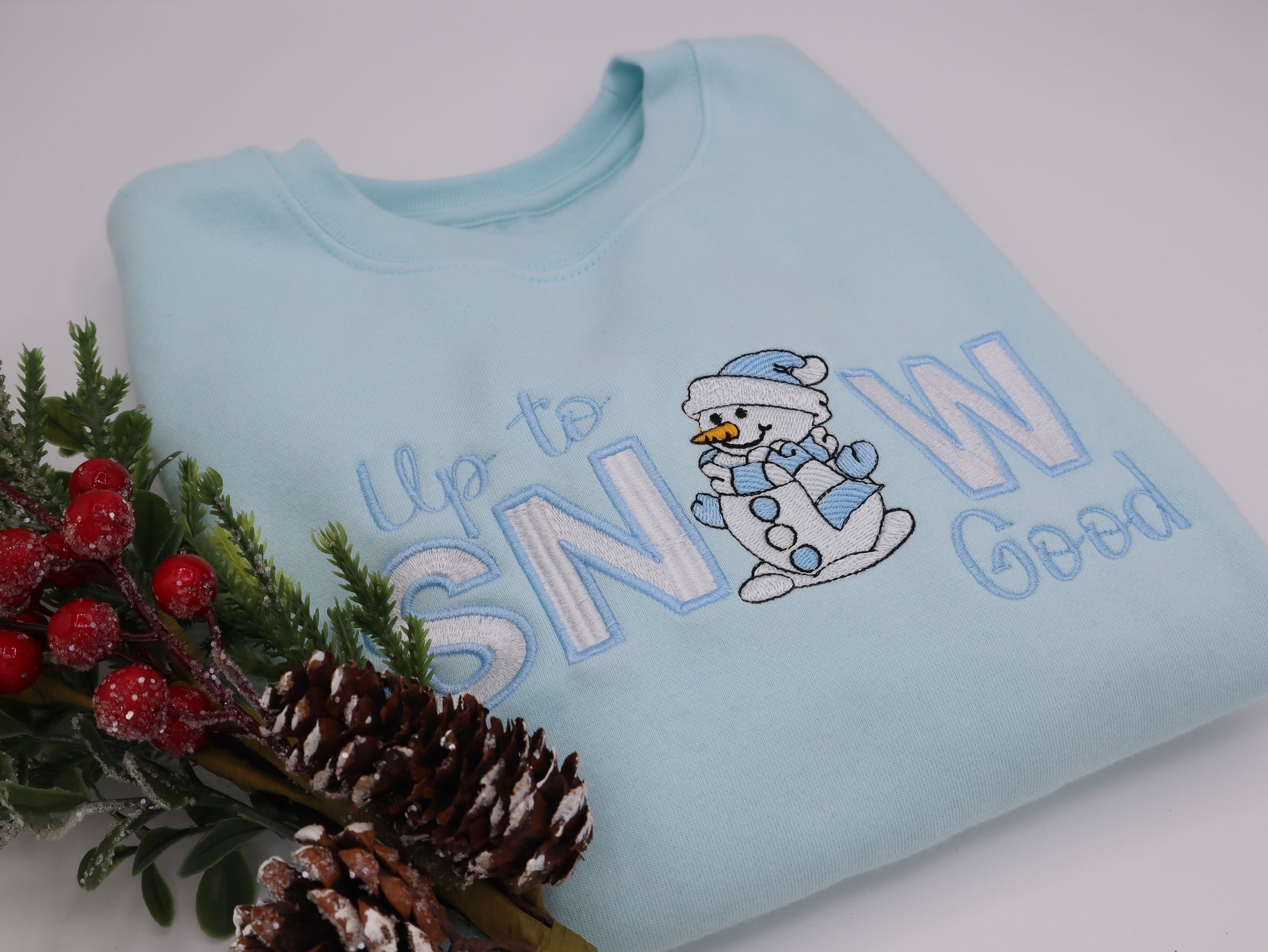 Add a playful twist to your child’s winter wardrobe with this adorable "Up to Snow Good" sweater! Featuring a cheerful snowman design and a fun, festive quote, this sweater is perfect for spreading holiday cheer while keeping your little one warm and stylish.
